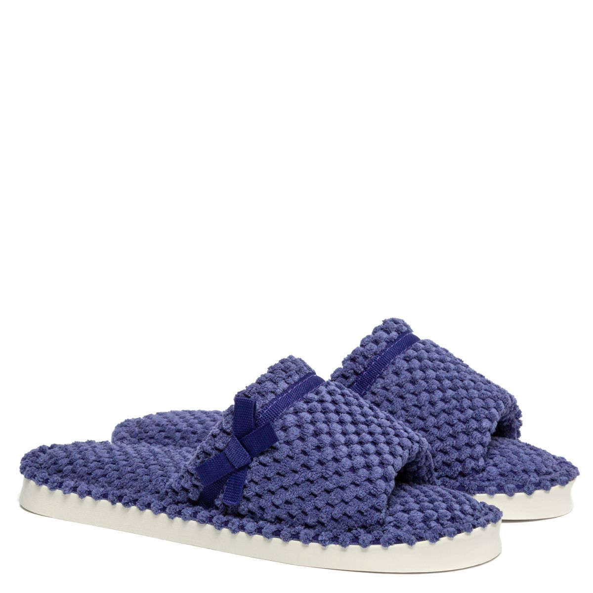 Кімнатні тапочки жіночі Amely лавандові — жіноче домашнє взуття з приємним кольором, цікавим дизайном та чудовими характеристиками зручності. Ці жіночі тапочки дуже м’які та характеризуються невеликим ортопедичним ефектом. Секрет — у поєднанні матеріалів. Верх моделі зроблений з поліестеру. Гнучка підошва — з матеріалу ЕВА, в основі якого спеціально спінений каучук. Тапочки з відкритими носами підходять для будь-якого сезону: в них однаково зручно. Особливої уваги заслуговує дизайн моделі: стилізація під крупну в’язку та декоративний бант в тон.